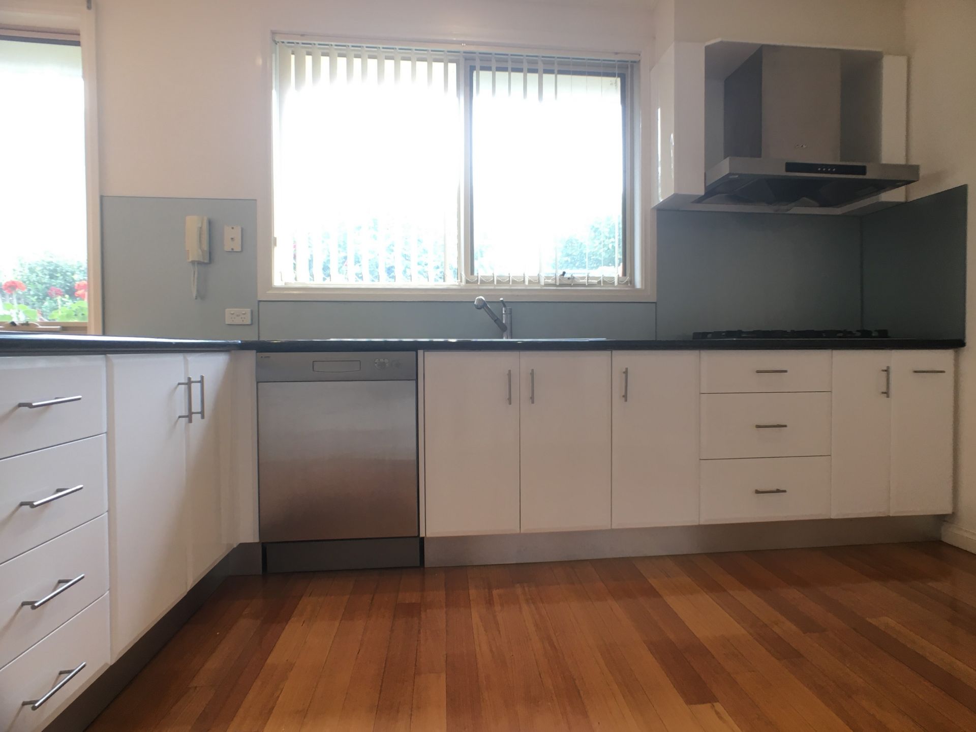 - sparkling kitchen with Blanco appliances, lots of cupboard space and adjoining family/dining room which opens onto deck area